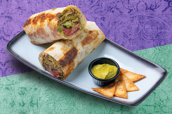 Falafel, Siyez Bulgur, Humus, Köz Patlıcan, Salatalık, Kiraz Domates, Marul, Sumaklı Kırmızı Soğan Turşusu, Tahin-Lime Sos